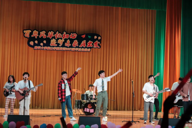 本次晚会由“百年风华忆初心,追梦未来再出发”为主题,由毕业生联袂学弟学妹们共演的方式,匠心打造了十二个精彩节目,展现了船山学子四年的青春时光和成长历程。本次晚会以院大艺团舞蹈队的热舞开场,同学们纷纷被热切的气氛感染,现场呐喊尖叫声此起彼伏。节目也更是层出不穷,精彩纷呈。屏幕上滚动着大四毕业生学长学姐们的欢歌笑靥,学弟学妹们激情四射的劲舞和大一同学们笑点连连的相声小品更是将现场的气氛推向了高潮。台上的欢歌笑语为观众席的老师与同学们带来了一场视觉与听觉的盛宴。