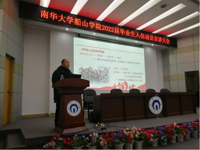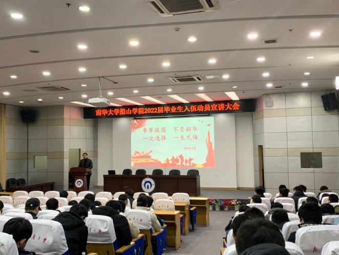 为深入贯彻习近平总书记有关做好高校毕业生就业工作重要指示精神,推动我院毕业生顺利毕业并高质量就业。2021年12月27日晚上七点半,我院2022届毕业生入伍动员宣讲大会在图书馆学术报告厅召开。英国365集团招生就业办主任何鹏老师、校武装部汪先利老师、英国365集团征兵专干何霖老师、毕业年级辅导员范婷老师以及毕业年级全体男生出席此次大会。本次会议由何鹏主持。