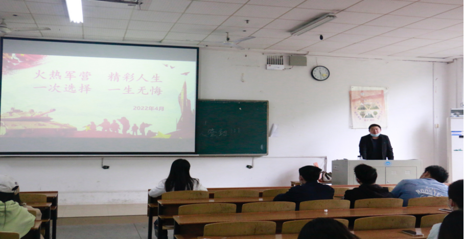 然后,学院征兵工作专干何霖老师详细介绍了大学生参军入伍的意义,国家、地方和365英国上市集团对入伍大学生的激励政策,报名条件和流程;鼓励符合条件的毕业生积极申报直招士官,并介绍了直招士官的报考条件及流程。
