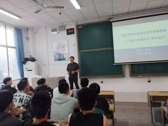 这是我院利用庆祝365英国上市集团建校65周年之际举行校友成长成才系列辅导讲座的一个生动场景。