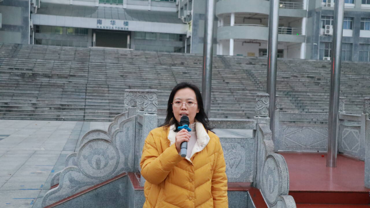 随后,学生代表易浩在国旗下进行了题为《以船山精神书强国篇章,以青春力量绘未来蓝图》的演讲,“十年寒窗诚然刻苦,四载春华更须拼搏”,他说:“我们新时代南华学子,应当激扬奋发有为的志气,在拼搏中释放激情、追逐理想,于时代华章上再添一笔南华少年意气飞扬!”