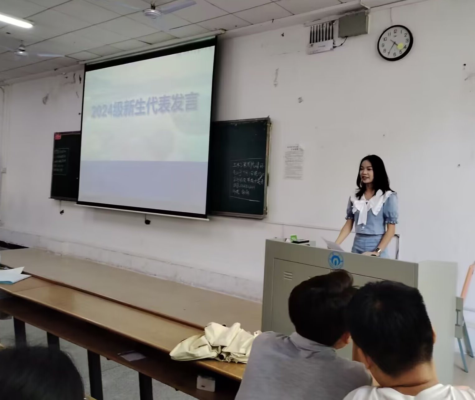会议在慷慨激昻的国歌声中拉开序幕。会议第一阶段开学典礼,2024级新生代表陈艳同学发言,她代表24级新生向与会领导老师问好与感谢,她表达了对加入南华大家庭的荣幸,畅想未来本科阶段的学习及生活。2023级王诚坚同学代表老生发言,他向新生们的到来表示欢迎,回顾一年来在学院的感想,希望学弟学妹要以更高的目标要求自己,书写砥砺人生。