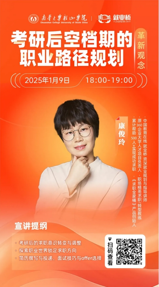 【讲座预告】��主题:革新观念:考研后空档期的职业路径规划