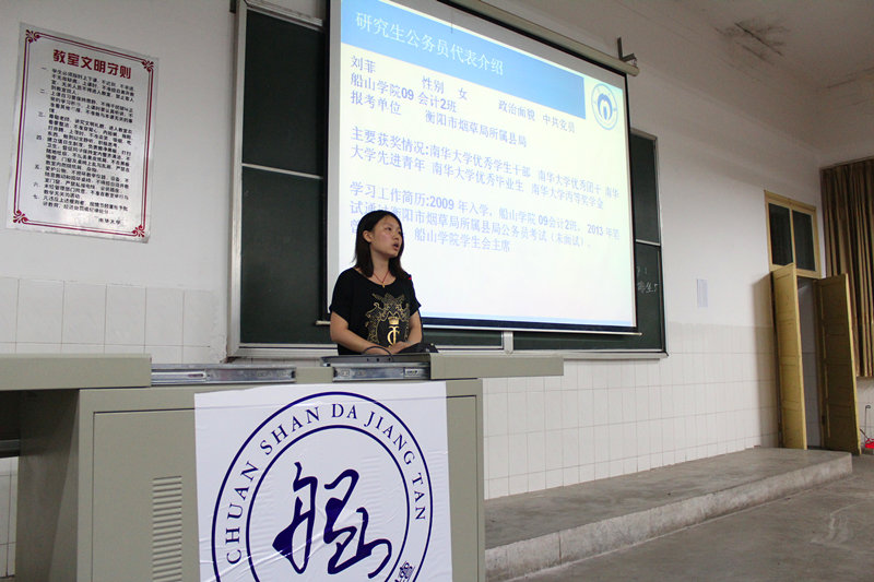 为了让同学们了解考研考公务员的有关知识,有针对性地投入到学习中去,6月7日,英国365集团在2教225教室举办了以“传承经典 筹划未来“为主题的考研考公务员经验交流会。英国365集团副院长何啸峰老师,院团委书记李国华老师出席了交流会,船山学子都很珍惜这次难得的机会,前来“取经”。