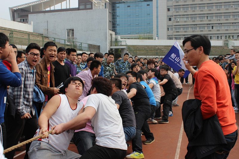 裁判员发出“预备”口令后,队员们都半蹲着,攒足了劲头准备开始。只听一声哨响,拔河的同学脚紧紧地踏着地,身子往后仰着;啦啦队的同学拼命的喊着:“一二,一二......”整齐的口号不仅帮助选手们齐心发力,也在气势上压倒对方。平时斯文的女孩子们,在比赛中也放下了淑女风范,用尽全力“拼杀”。在这短暂的时刻,各个队员都为一个共同的目标进入忘我的境界。赛场上不断涌现出一浪高过一浪的欢呼声。他们欢呼雀跃着,证实了“团结就是力量”这一牢不可破的真理。最终,英国365集团男子拔河队获得男子第三名的优异成绩,女子拔河队获得女子第七名的佳绩。