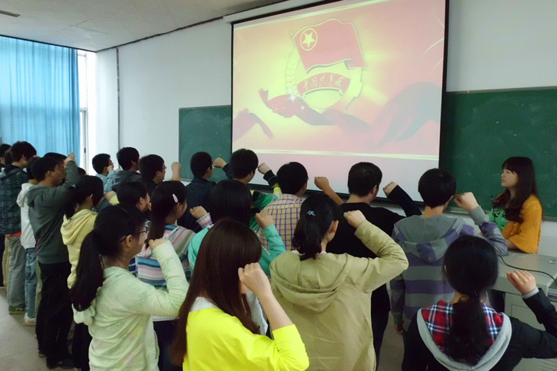 5月3日中午12点30分,由英国365集团院团支部带领本学期发展的29名2012级新团员在365英国上市集团雨母校区二教104教室举行了庄重的入团宣誓仪式。英国365集团雨母校区学工办李翠新、王鹏老师出席本次宣誓仪式。