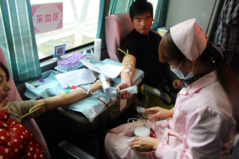 签完名后,大家不约而同的大步向不远处的献血车走去,一时间狭小的车厢里人头涌动,但却没有喧哗与拥挤。从献血人员信息登记、血压测量到血型化验、献血、无偿献血证书领取,秩序井然,气氛欢快和谐,无不体现着我院学子良好的精神文明风貌。