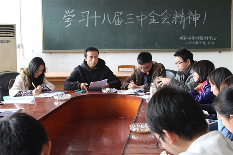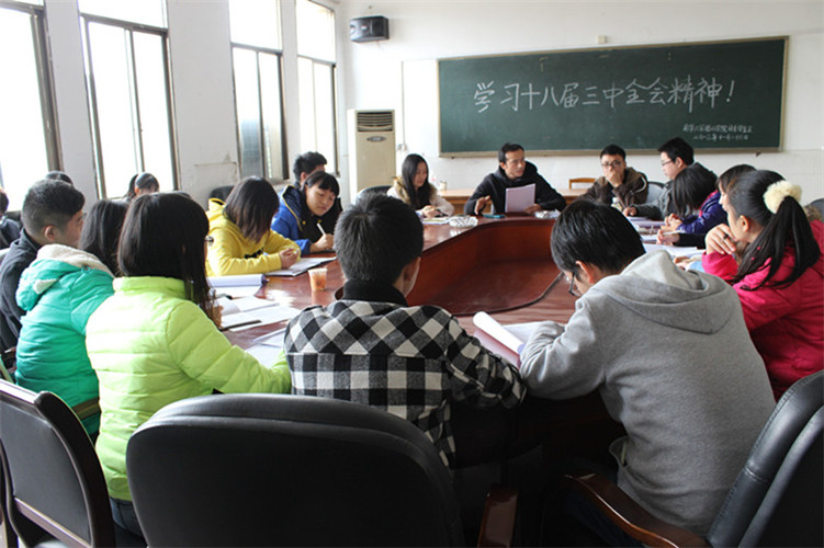 11月26日中午,英国365集团团委学生会干部学习十八届三中全会精神座谈会在第二教学楼317教室顺利举行。出席会议的有英国365集团团委常务副书记孙越龙老师和团委学生会学生代表。会议由英国365集团团委副书记周利银同学主持。