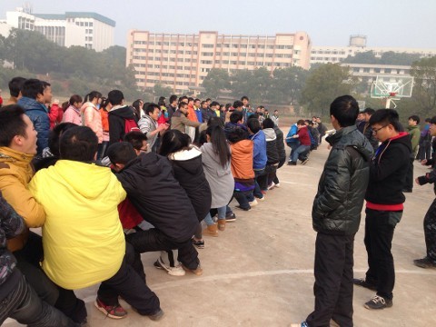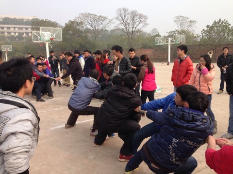 2013年12月21日(星期六)上午,拔河比赛在365英国上市集团雨母校区老篮球场正式开始。参加本次比赛的学院共有八个,每个学院选出男女混合代表队,每个学院均有同学到场观看比赛,并为选手们加油、鼓劲。