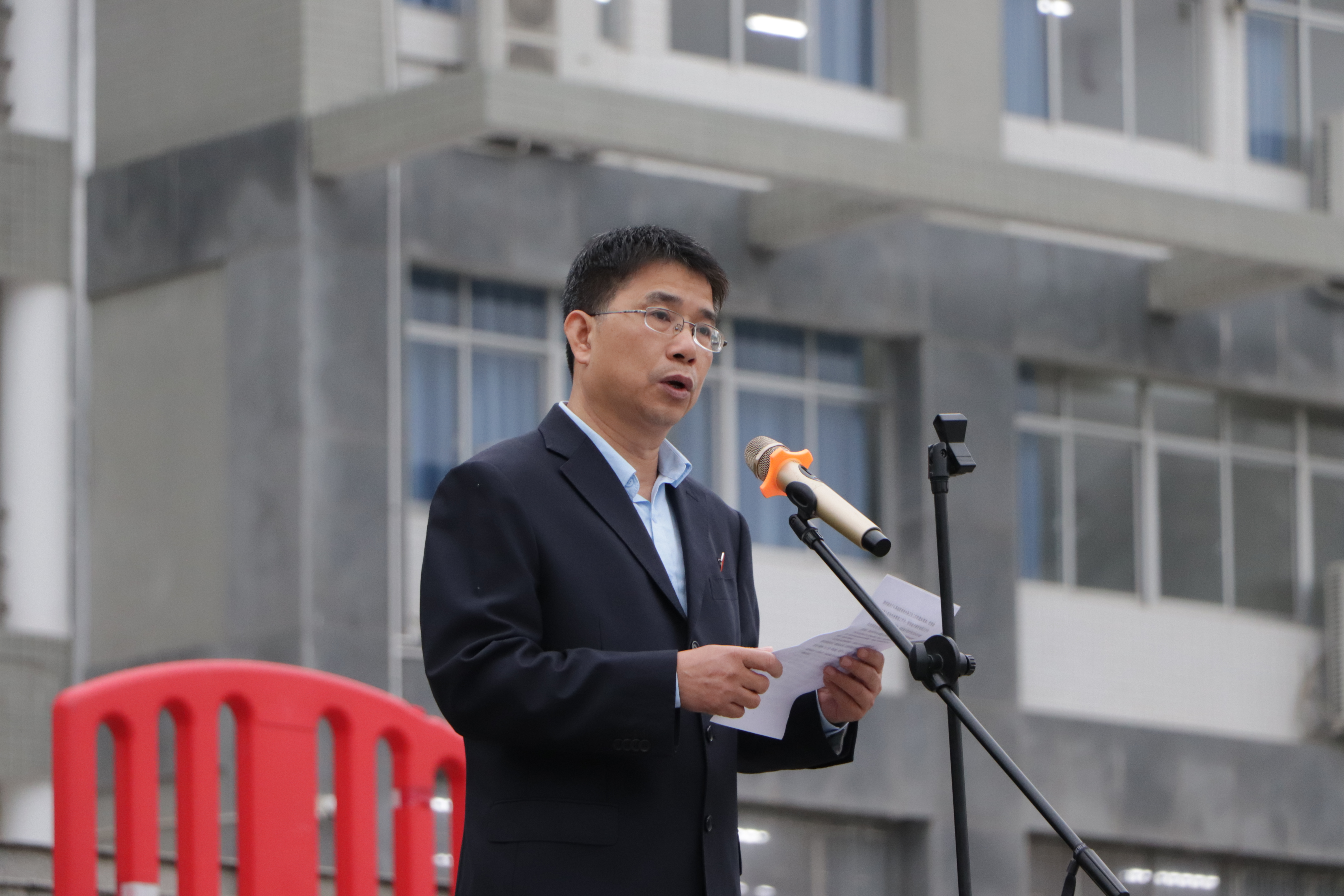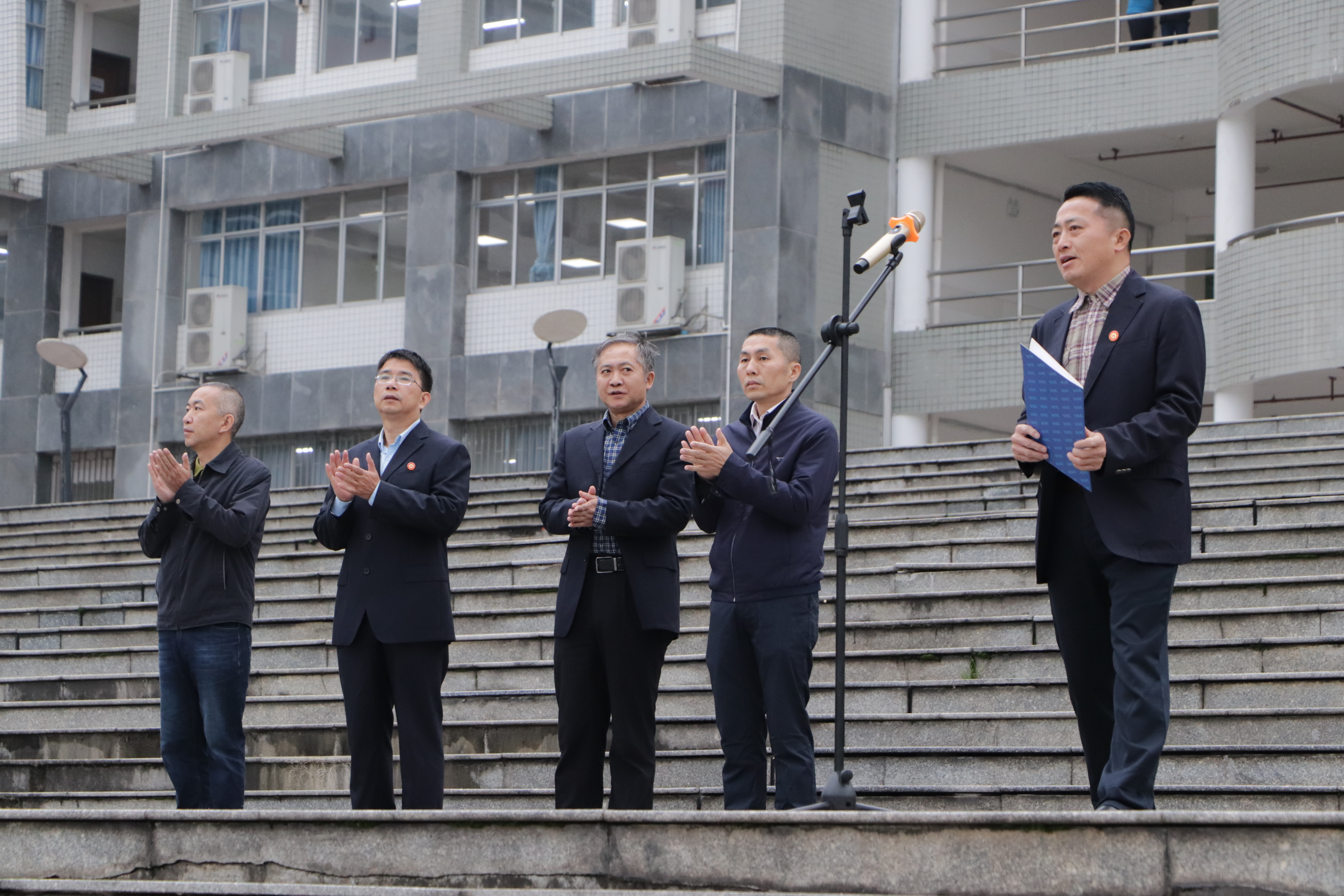 早上7时,院长伍衡山宣布升旗仪式正式开始,在全体师生的注目下,预备役国旗班成员迈着坚定、整齐的正步走向了旗台,在《义勇军进行曲》铿锵、悠扬的旋律中,五星红旗冉冉升起,迎着朝阳随风飘扬。