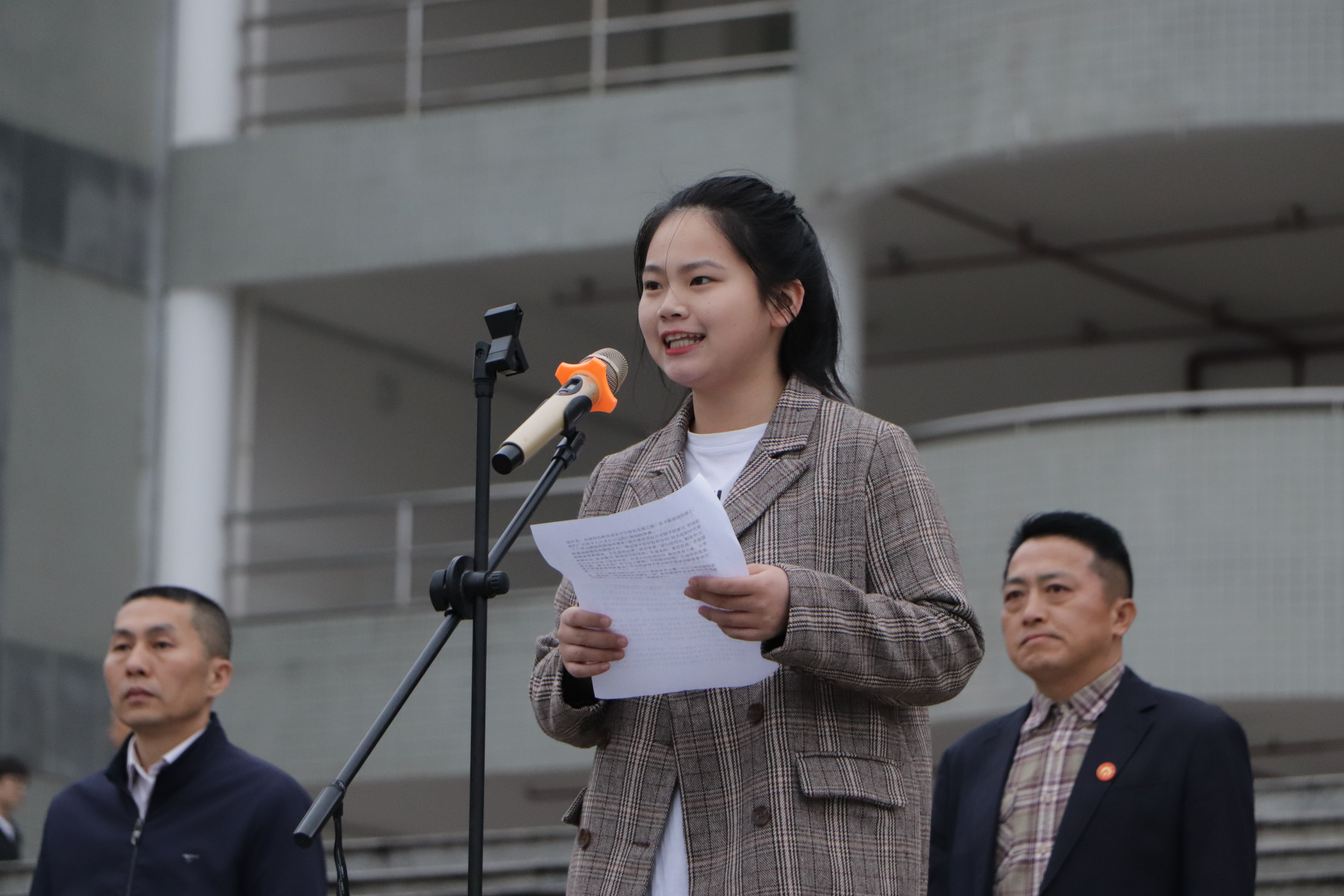 随后,由我院18级学生代表梁梓琪发表《与祖国同呼吸,与南华共发展》主题讲话。梁梓琪同学讲到疫情期间所有逆行者的无私奉献与爱国情怀以及新时代青年人前仆后继,同时间赛跑,与病魔较量的担当。她表示,作为新时代的南华青年,要将肩负历史重任,担负历史使命,在风华正茂时,崭露锋芒,在实现中华民族伟大复兴的道路上,放飞自己的青春理想。
