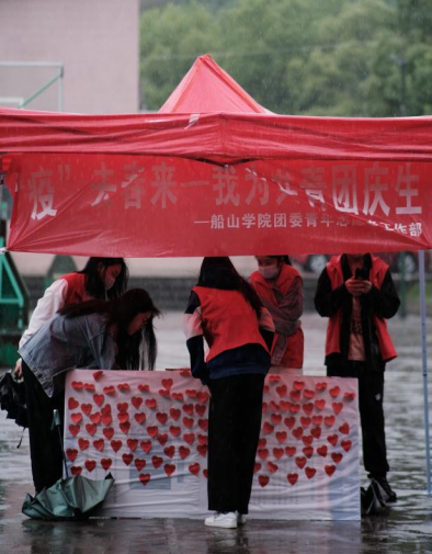 2022年4月29日我院团委青年志愿者工作部在红湘校区致远园食堂楼下和图书馆旁篮球场开展“‘疫’去春来——我为共青团庆生”志愿服务活动。