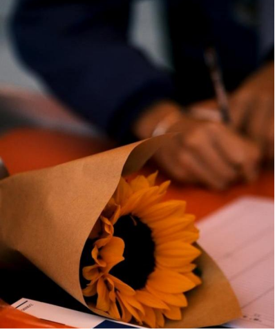 在活动中,我们将“疫情结束后我们一起…”的心愿纸条张贴在校园里,由同学们撕下其中一张小纸条到活动地点去兑换向日葵。向日葵代表着积极向上,向日葵始终追随太阳就像是中国共青团始终围绕在中国共产党的周围。