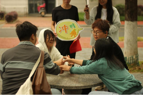 近百名参赛新生组成15支队伍,在“青春之家”签到并领取地图、矿泉水等物资,上午9点整准时出发前往地图上7个任务点。活动现场特设你画我猜、旋风转布条、乒乓接力赛、指压板跳绳、绑腿疾走、抢水瓶、三人抱成团等丰富的趣味活动,完成指定任务后拍照打卡后可前往下一地点。