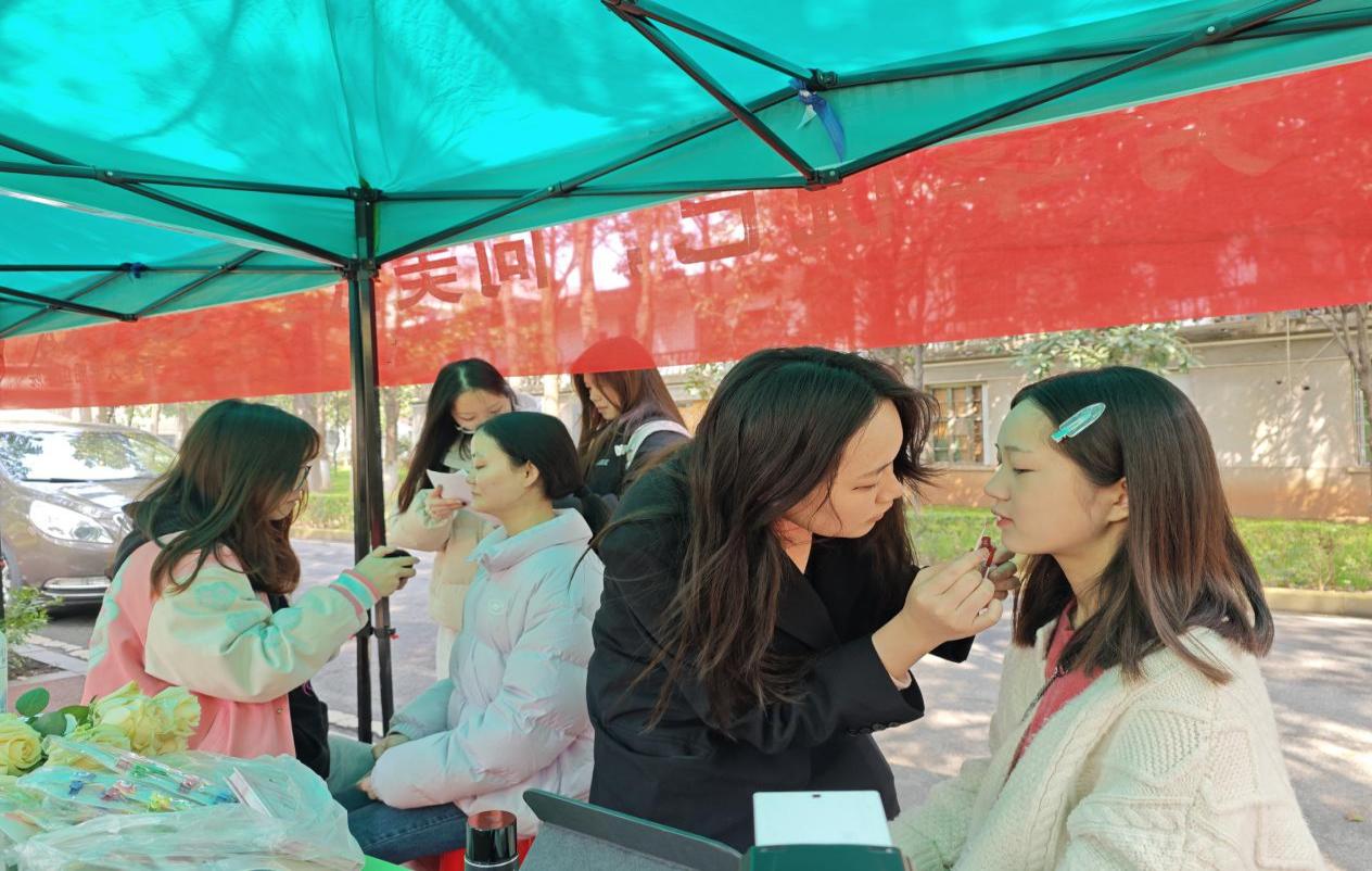 为庆祝2024年“三八”国际妇女节,3月8日当天,学院学社联美妆协会举办了“芳华悦己,向美而生”创意美妆活动,活动内容包括化妆体验、美妆化妆比赛以及拍摄写真等。在化妆体验区,学院美妆协会的工作人员化身化妆师、造型师,为宿管阿姨和同学们提供了独特的“变妆”体验,在校园内上演着妇女同胞们“向美而生”的温馨一幕。
