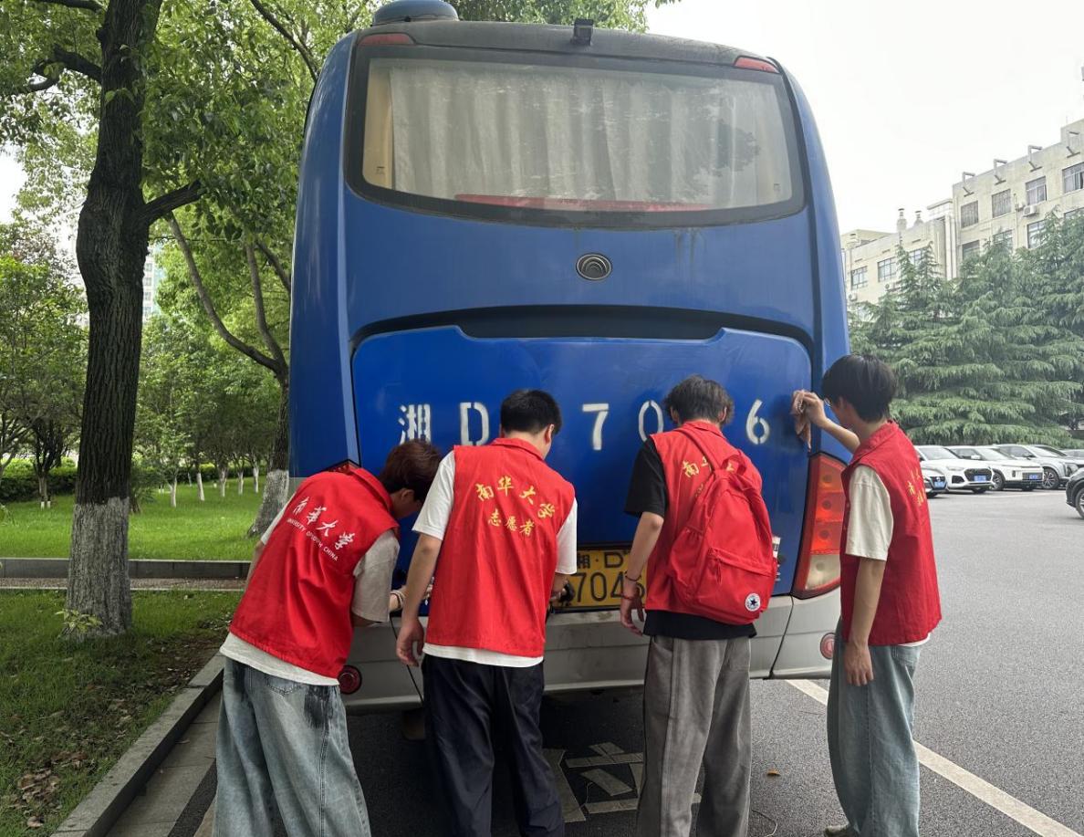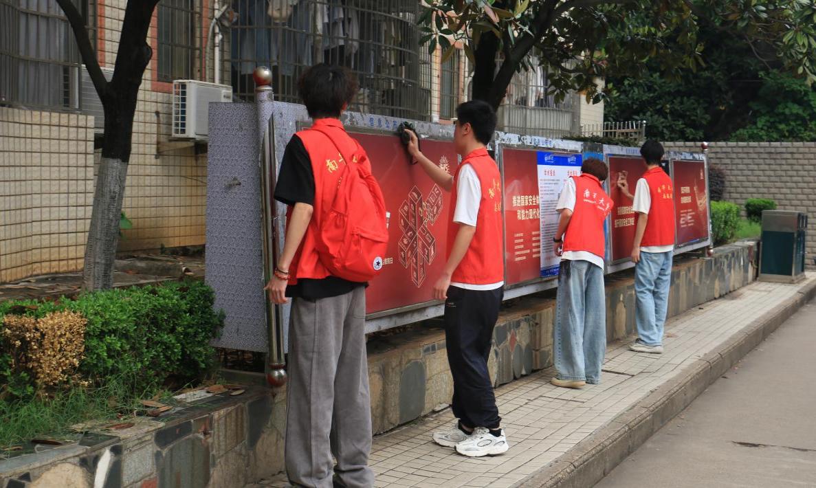 40 余名志愿者分成五组,负责校园公共区域清扫、教学楼广告清除、车辆停放规范、公示栏及校车擦拭、绿化带垃圾清理等工作,展现青年劳动担当。