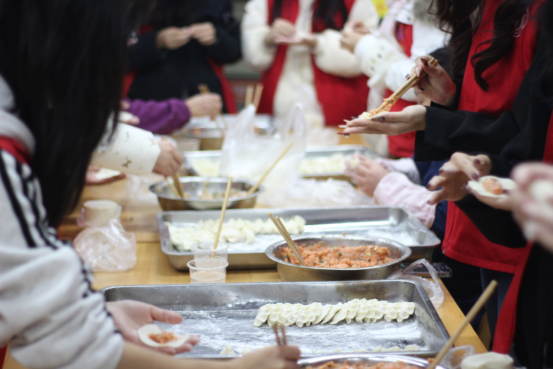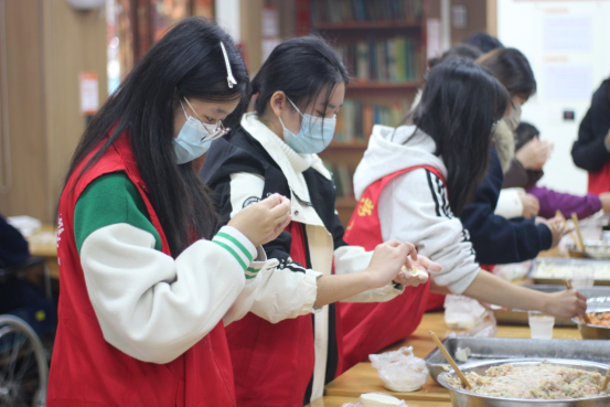 文艺汇演结束后,志愿者们转入餐桌,与护工们携手协作,为老人们包制象征团圆的冬至饺子。大家分工有序,和面、擀皮、包馅,在欢声笑语中,将满满的祝福包进一个个饱满的饺子中。当热气腾腾的饺子端到老人面前时,喜悦与感动洋溢在整个敬老院。