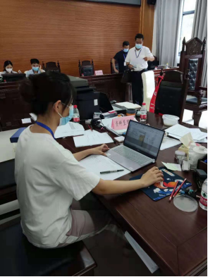 图5 潘海虹同学负责接收疾控对确诊患者的流调数据 图6 宁韬瑜同学做核酸采样