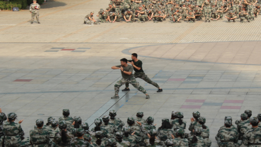 日哺之时,昂首挺胸,挺直的军姿。一身戎装,已汗湿襟袖,但大家还是坚持着不肯倒下,努力着完成教官的每个任务。