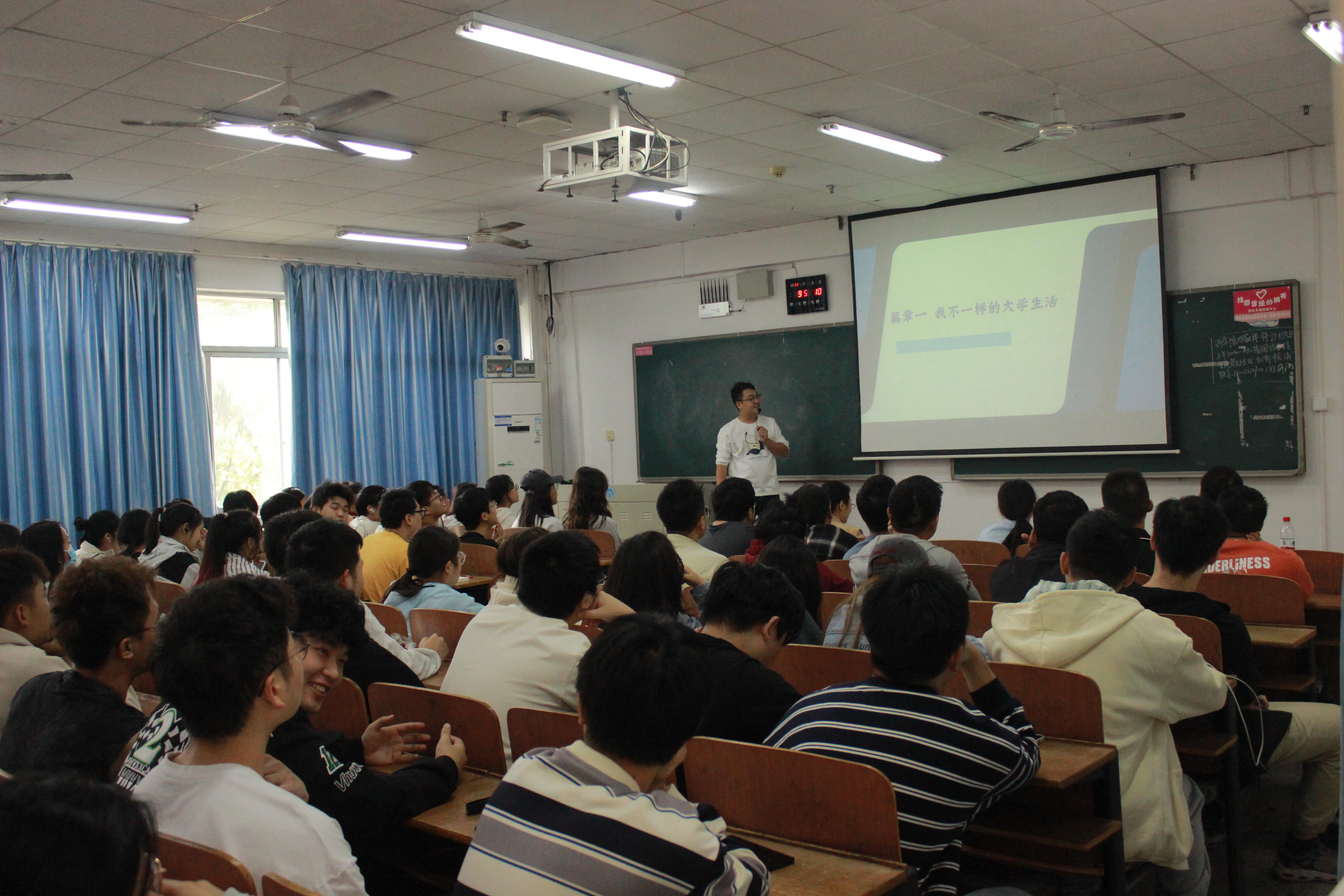 讲座期间,谭佳龙校友分享了他在大学四年里做过的创业,这些创业不仅让他赚了人生中的第一桶金,更丰富了他的社会阅历和培养了他的商业思维。毕业后,谭佳龙校友进入衡阳桑谷医疗机器人有限公司。刚入职工作的几年里,他发现了自己身上的许多不足,但他没有气馁,而是通过不断学习来积累经验与弥补自己的不足。后来他选择了自主创业,成立了属于自己的公司。公司主要研发无人机项目,研发的第一个项目是医用物流无人机,它能很大程度地缩短运送医院需要检验标本切片。谭佳龙校友表示自己能够为医疗和社会提供价值感到很自豪。讲座现场气氛热烈,掌声阵阵。