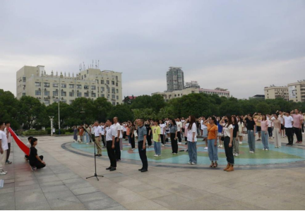 6月21日上午7:00,我院在南华广场举行了升国旗仪式暨新党员入党宣誓活动。活动由英国365集团党委副书记旷勇主持,学院全体院领导、辅导员、学生党员及所有大一学生参与。