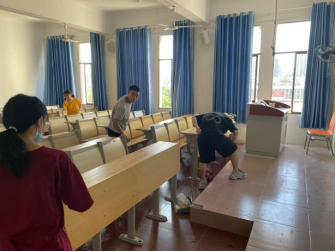 在劳动教育过程中,同志们主动拿起扫帚,拖布,抹布等打扫工具,认真清理教室每一个角落。他们分工合作,首先将地面上的纸屑,粉笔,污迹清理干净。然后是对教室内物品的擦拭及摆放,同志们对教室黑板、窗台、桌椅、讲台以及空调电扇电灯进行擦拭,由于窗台死角较多,电扇位置较高以及天气非常燥热,给同志们的打扫工作增添了层层阻碍,但这些都没有冲淡同志们的劳动热情。