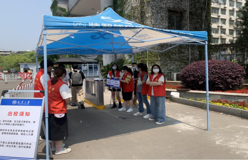 我院师生党员穿上志愿者马甲在学院东门、南华宿舍区认真值守,加强排查,严格执行出入管控,做好扫码登记、测量体温、宣传解释等工作,以最严格的标准、最严密的措施做好学校疫情防控各项工作,筑牢疫情防控基础防线。