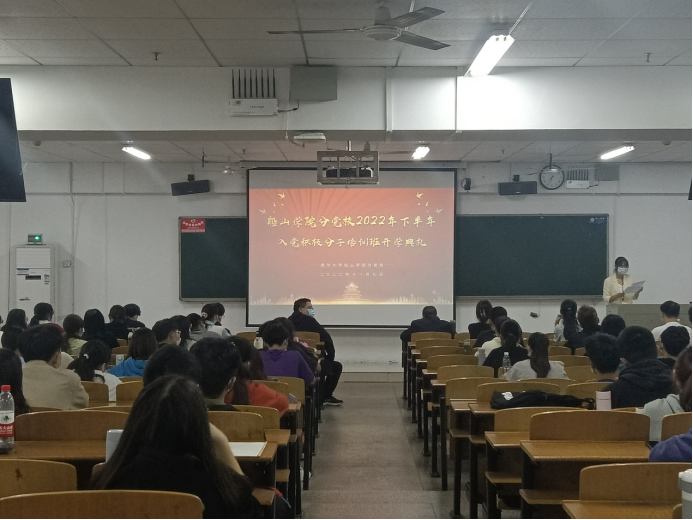 随着庄重的国歌响起,典礼拉开了序幕。学院党委副书记刘期彪老师对全体学员表示热烈祝贺,江娴老师宣读分党校培训班的有关制度和编班情况后,院党委书记阳剑兰老师作动员讲话。